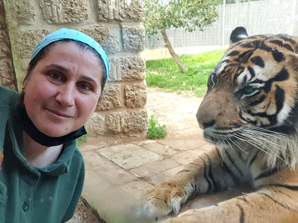 سكينة فنادقة رفقة حيوانها المفضل، النمر
