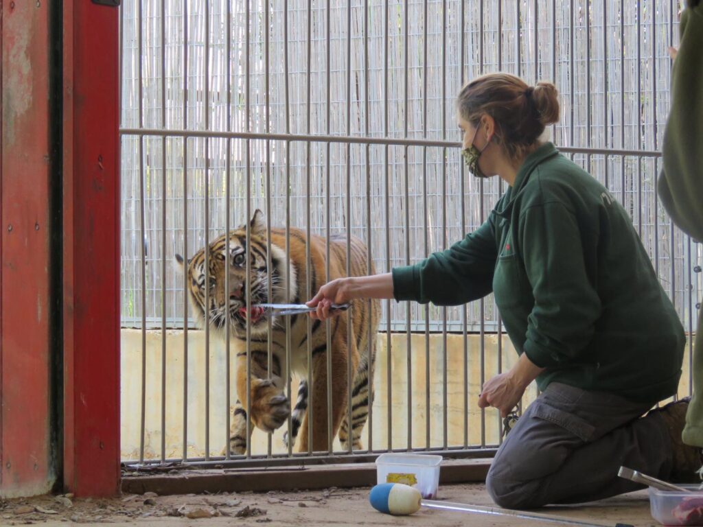 وأضافت: “هذا المكان له أهدافه، لدينا حيوانات نحافظ عليها معظمها مهددة بالانقراض، حيث نعمل ضمن جمعية عالميّة كبيرة تعتني بالحيوانات. وإضافة إلى ذلك، نجري أبحاثًا عن الحيوانات وسلوكها “.