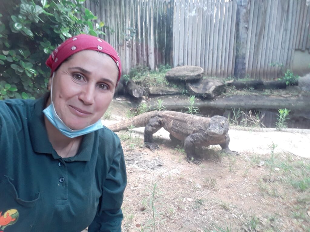 “لم أتوقع أن يتم قبولي للعمل هناك، وكنت خائفة من الفشل. لكن علاقتي القوية مع الحيوانات ساعدتني على تخطي الخوف، وبدأت تدريجيًا أتعلم وأتطور. عملت أولًا مرشدةً، ثم انتقلت إلى تدريب الحيوانات المفترسة، مثل النمور وسحلية الكومودو وهي من أكبر السحالي في العالم “.
