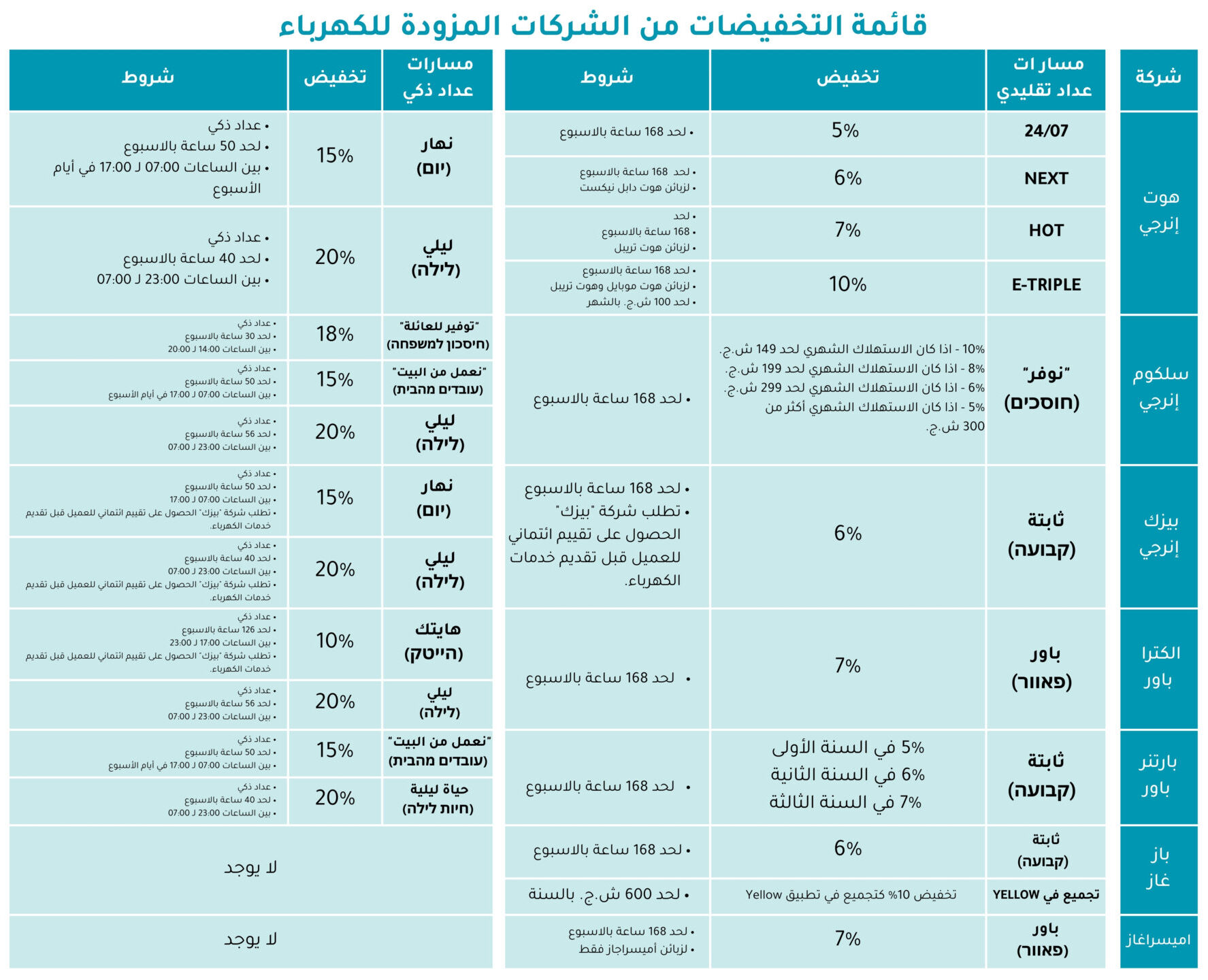 إليكم قائمة التخفيضات للشركات المزودة للكهرباء: