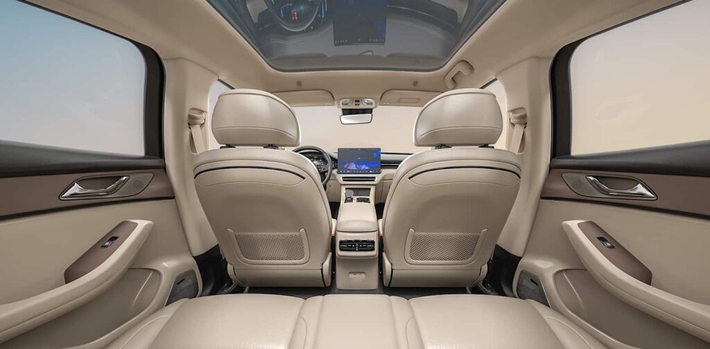 من الداخل، تكتشف عالمًا من الراحة والذوق العالي. مقصورة القيادة مصممة لتناسب العائلات، مع توزيع ذكي للمساحات وتفاصيل تبرز الفخامة. الكونسول الوسطي يفصل بين السائق والراكب الأمامي بطريقة أنيقة تضيف خصوصية وراحة. المقاعد الأمامية مغطّاة بجلد نابا الفاخر، وقابلة للتعديل كهربائيًا، مع ذاكرة لوضعية الجلوس. كما تتوفر خاصية التدفئة والتبريد لراحة مثالية في كل الفصول. وفي نسخة  AWD، تصبح الراحة أكثر تطورًا بفضل نظام تدليك مدمج بخمس برامج مختلفة في مقاعد السائق والراكب الأمامي. أما السقف البانورامي فيمنح إحساسًا بالتواصل مع البيئة الخارجية ويُدخِل الضوء الطبيعي ليضيف أجواء هادئة وممتعة أثناء القيادة.