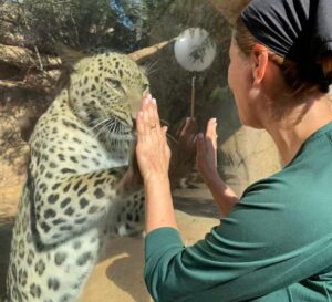 تمضي سكينة فنادقة يومها بين تدريب النمور والدببة، وملاطفة أكبر نوع من السحالي في العالم